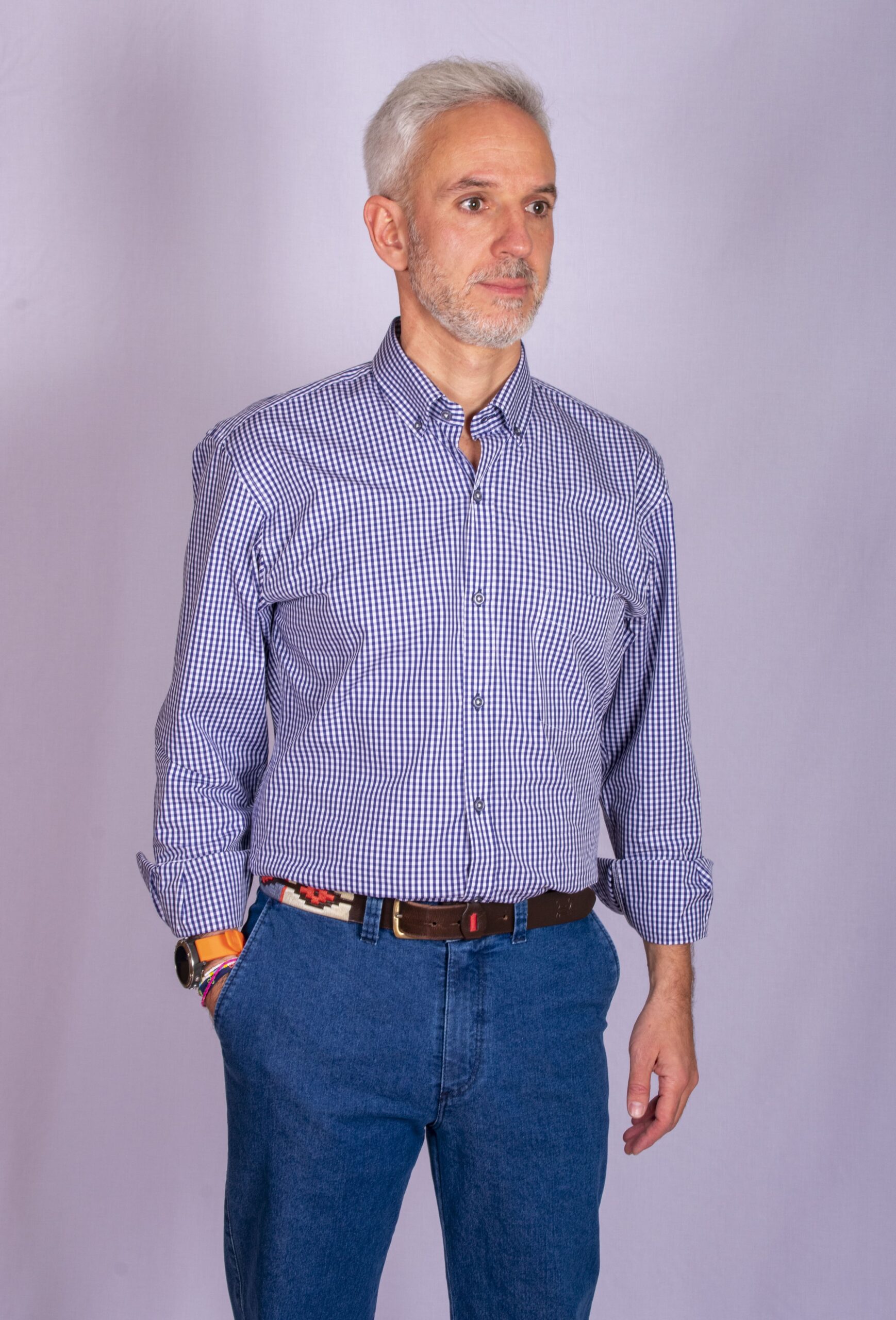 • Camisa de hombre con cuadro vichy azul